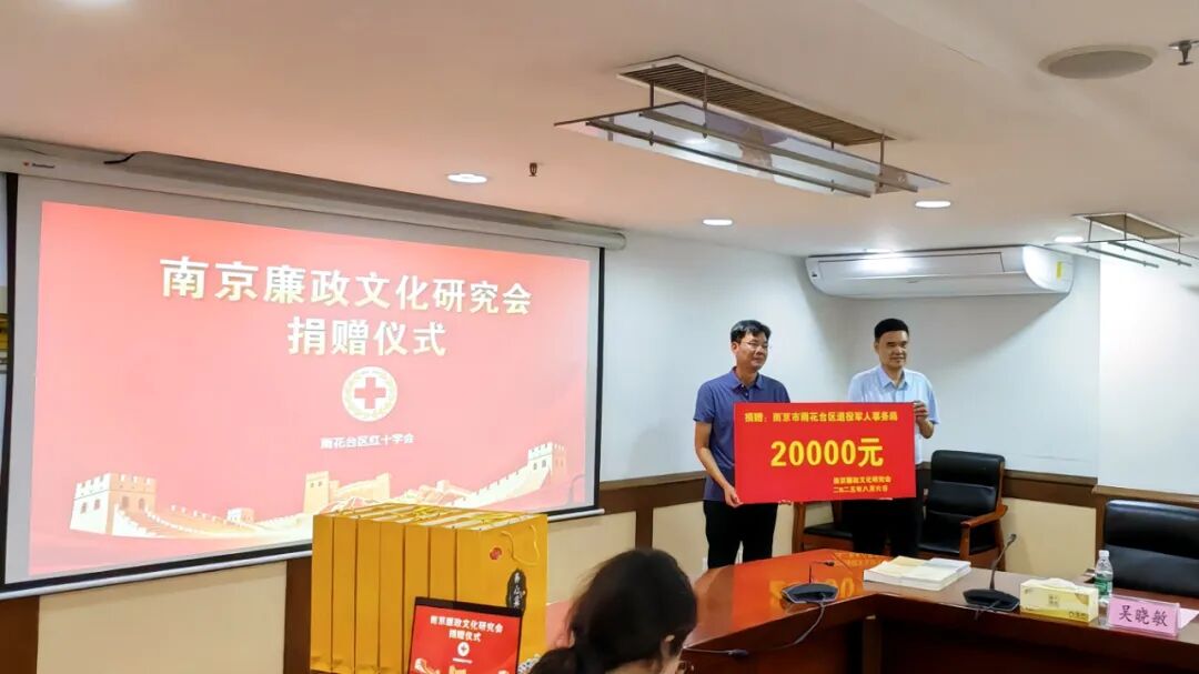 为纪念中国人民抗日战争暨世界反法西斯战争胜利80周年,8月6日下午,南京廉政文化研究会部分领导班子来到南京市雨花台区政府,慰问退伍老兵和环卫工人活动捐赠仪式在雨花台区红十字会举行。